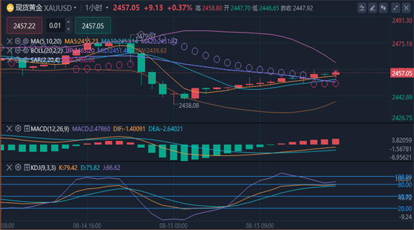 【黄金消息面分析】:随着周四(8月15日)的欧洲交易时段的到来,黄金市场再次成为投资者关注的焦点。在前一交易日经历了显著的下跌之后,金价在周四展现出了复苏的迹象,短线快速上升至2455美元/盎司附近,日内上涨接近10美元。