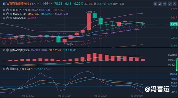【原油消息面分析】:周四有消息称,伊拉克将在9月份降低产量和出口量,国际油价大涨。WTI原油最终收涨2.18%,报75.95美元/桶;布伦特原油最终收涨1.76%,报78.75美元/桶。