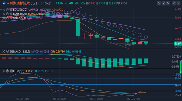 【原油消息面分析】:周一(9月2日)亚市早盘,国际油价延续跌势,美原油一点刷新逾一周低点至72.96美元/桶。油价上周五大跌逾3%,回吐了上周四的全部涨幅,投资者评估OPEC+供应将从10月开始增加的预期,以及美国数据显示消费者支出强劲后9月大幅降息的希望减弱。