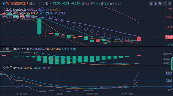 【原油消息面分析】:周一(9月2日)亚市早盘,国际油价延续跌势,美原油一点刷新逾一周低点至72.96美元/桶。油价上周五大跌逾3%,回吐了上周四的全部涨幅,投资者评估OPEC+供应将从10月开始增加的预期,以及美国数据显示消费者支出强劲后9月大幅降息的希望减弱。