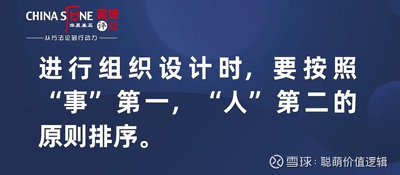 价值管道决定组织架构这一理念,对国内企业有更大的警醒作用。为什么?因为按照国人的传统,总是重于“见人”而疏于“见事”,即关注人胜过关注事,而价值管道决定组织架构是以“事”为出发点的。并非人不重要,实因事已经把人包裹进去了。所以进行组织设计时,要按照“事”第一,“人”第二的原则排序。