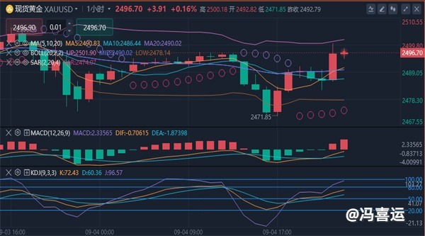 【黄金技术面分析】:建议日内操作依旧保持高空低多思路。对于上方继续留意2490一带,还是可以空单参与,重点关注2500一带压制,之下继续看回落,而由于2480已经下破,因此延伸继续下看2470一带。至于下方支撑则先关注2480一带,此处既是4小时布林带下轨支撑,日内其次重点关注2470-2473区域支撑,我认为当金价进入这两处支撑区域时,可择机布局多单。静待非农区间破位指引方向。综合来看,今日黄金短线操作思路上回调做多为主,反弹高空为辅,上方短期重点关注2510-2515一线阻力,下方短期重点关注2480-2475一线支撑。