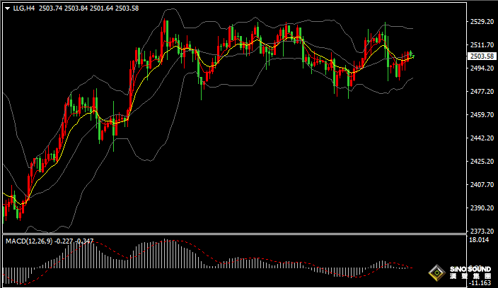 金价4小时图看,布林三轨持续同步向上,金价在布林中轨附近盘整;短期均线EMA5和EMA10胶结走平,MACD指标动能柱在0轴附近极度缩小,RSI指标在中线50位置附近走平。日内短线操作建议,估计金价在2498-2508区间整理为主,如突破该区间时,上行目标看2515-2520,下行目标看2482-2488。