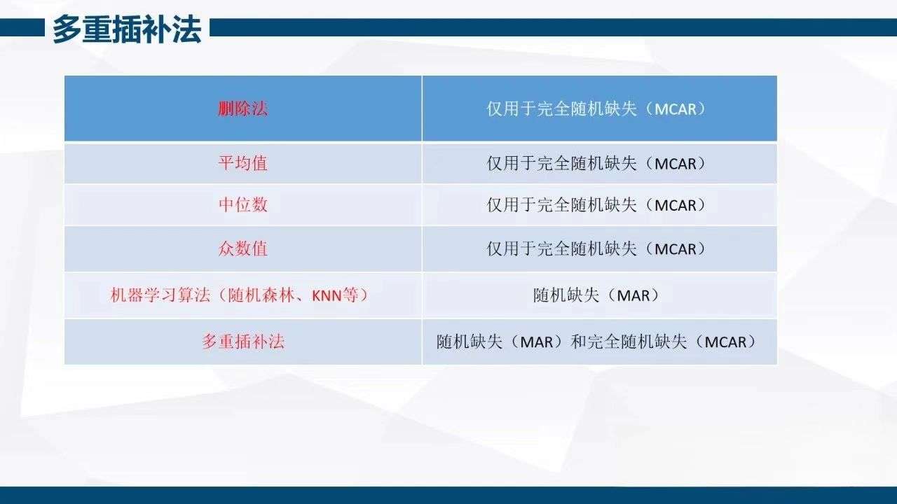 python的Numpy库中pd.fillna函数就可以搞定,语言非常简洁、方便!看到这里你是不是突然紧张一下,这一期不会是上python教程吧。哈哈哈,我个人不是特别喜欢python的语法,所以也只是在上机器学习中上python(因为python跑的更快一些),所以这一期咱们还是用R。说到缺失值,不得不提缺失值的类型,随机缺失(MAR,Missing at Random)、完全随机缺失(MCAR,Missing Completely at Random)、非随机缺失(MNAR,Missing not at Random),因为每一种缺失类型对应着不同的填补方法,一般情况下缺失数据属于随机缺失、完全随机缺失,也只有这两种类型的据能够填补,至于自己数据属于哪一类网上很多教程,本文不再阐述啦。因为我赶着打酱油去。