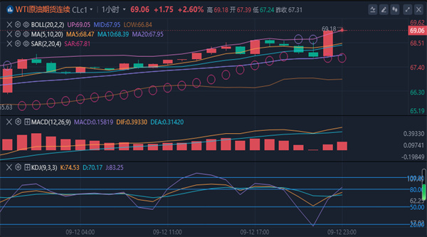 【原油消息面分析】:周四(9月12日)欧盘时段,原油连续第二天上涨超1.00%,周三涨幅超过1.50%,这是原油两周以来的最大单日涨幅。投资者越来越担心热带风暴“弗朗辛”对美国产量的影响。