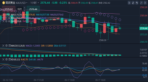 【黄金技术面分析】:黄金今日出现了高位震荡走势,最高点在2587美元承压徘徊,最低点在触及2568美元一线企稳反弹。周线中阳站稳2530后,形成高位的中继偏多,但存在一波回测测试突破后的动作,所以周内需要完成这个动作后才能进一步走高。日线级别收录中阳后,延续逐步减弱。但偏多的态势依旧存在,只是涨势放缓,谨防冲高回落。高位的楔形末端。四小时级别上看,大阳站稳后连阳极端走高,那么一般这种情况,会出现换个斜率在走,也就是说存在一波调整后换一个斜率平缓的上升形态。综合以上分析:黄金高位震荡中,今日操作上考虑高空低多策略,上方关注2590-2600美元阻力,下方关注2565-2555美元支撑。今日黄金实盘在2575-2578空一次,获利在2568一带。