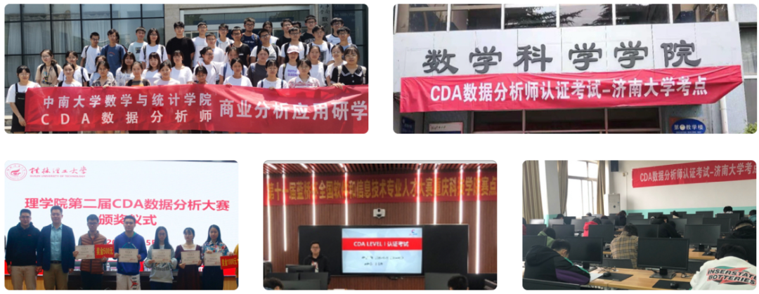 CDA认证已获得了百余所高校的认可,目前已与国内100多家高校达成合作,包含北京外国语学校 、西安财经大学、西北工业大学、中央民族大学、西安石油大学、济南大学等,制定了全国统一的校企合作管理制度标准,建立了高校考试中心、专业共建及新时代数据科学人才培养基地。