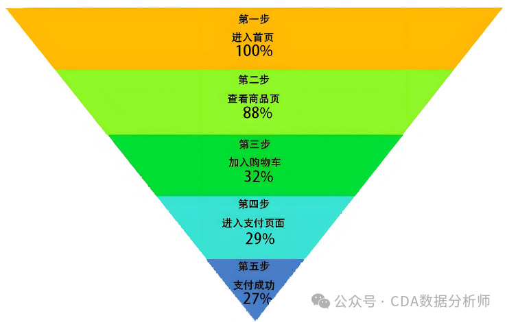 漏斗分析通过模拟用户在特定路径上的行为转化过程,可以帮助了解用户在各个关键步骤的转化率和流失率,定位用户流失的环节和原因