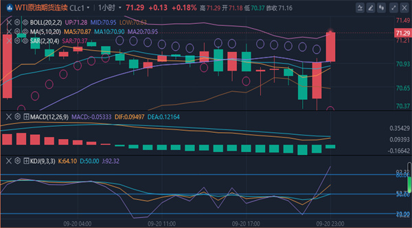 【原油消息面分析】:周五(9月20日)欧盘时段,由于中东和平或停火协议似乎比以往任何时候都更加遥远,原油价格在前一天飙升近3%后,周五在71美元附近盘整。