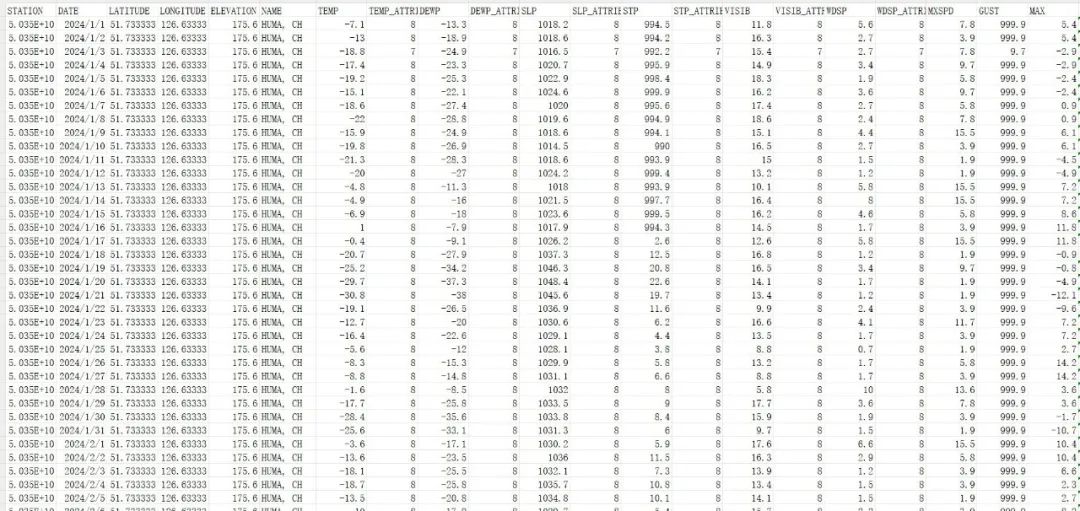 这份数据集由美国国家海洋和大气管理局(NOAA)的国家环境信息中心(NCEI)发布,是理解中国气象变化的一把钥匙。数据集的时间跨度从1942年开始,一直延伸到2024年,为我们提供了一个长期的、连续的气象记录。