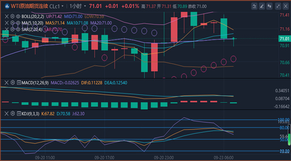 【原油技术面分析】:原油日线一波连阳式低位反弹,短期进入宽幅震荡。4小时图依托中轨走出一波持续性的反弹,目前是二浪反弹当中,上方接近下行趋势线的阻力,面临关键选择点。多空持续性是个问题,短线留意4小时结构中的三角区间破位,以中轨做多头防守,下行趋势线为空头防守,破位延续的行情。综合来看,原油今日操作思路上建议以回踩低多为主,反弹高空为辅,上方短期关注72.5-73.0一线阻力,下方短期关注70.3-69.8一线支撑。