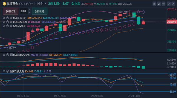 【黄金消息面分析】:周一(9月23日)欧洲时段,现货黄金价格在创下历史新高后突然大幅回落,目前金价已跌至2618美元/盎司附近,日内已经由涨转跌。亚市尾盘时段,金价曾一度触及2631.37美元/盎司的高位,刷新历史纪录。然而,随后的回调使市场情绪开始谨慎。