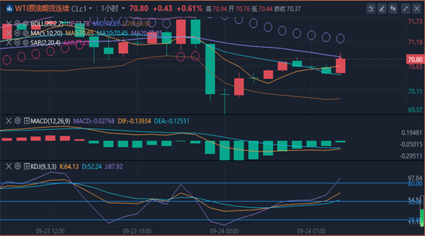 【原油消息面分析】:周一(9月23日)欧盘时段,受上周美国降息的影响,轻质原油期货周一走高。交易员正密切关注50%斐波那契回撤位72.21美元阻力位,价格有可能向50日移动均线72.61美元和200日移动均线72.94美元附近的密集交易区域看涨。