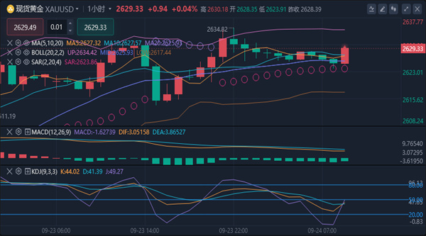 【黄金消息面分析】:周一(9月23日),现货黄金延续涨势,一度逼近2635美元/盎司,创下纪录新高。分析师指出,美联储再次大幅降息的预期升温,加之中东局势愈发紧张,这刺激金价走强。现货黄金周一收盘上涨近0.3%,报2628.38美元/盎司。金价盘中最高触及2634.88美元/盎司,刷新历史新高。