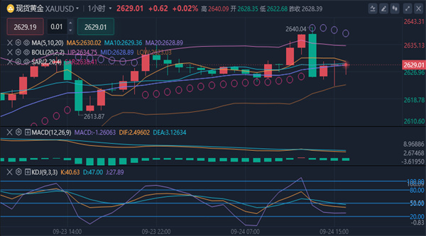 【黄金消息面分析】:周二(9月24日)亚市尾盘,现货黄金短线突然急跌,金价自稍早触及的历史高位2639.96美元/盎司大跌,目前跌至2625美元/盎司附近,日内转为下跌。