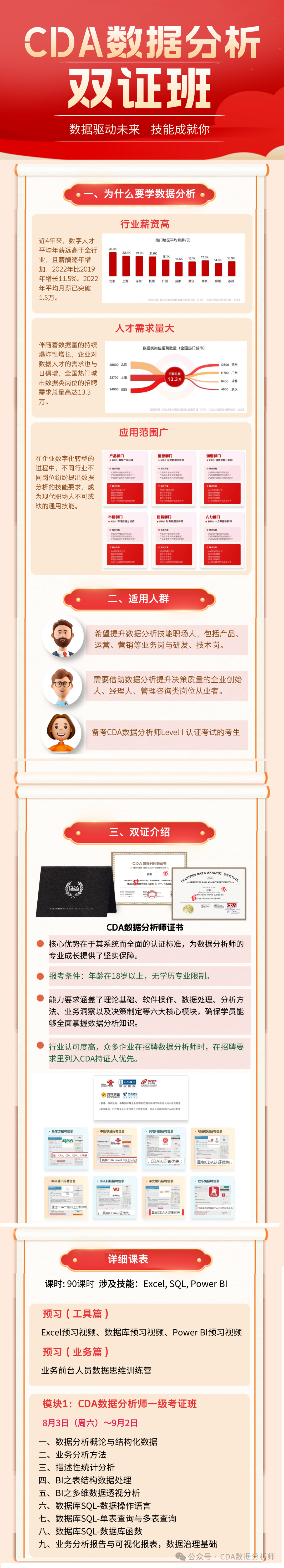 CDA数据分析师双证班2024.08.03第一次课欢迎大家扫码咨询。