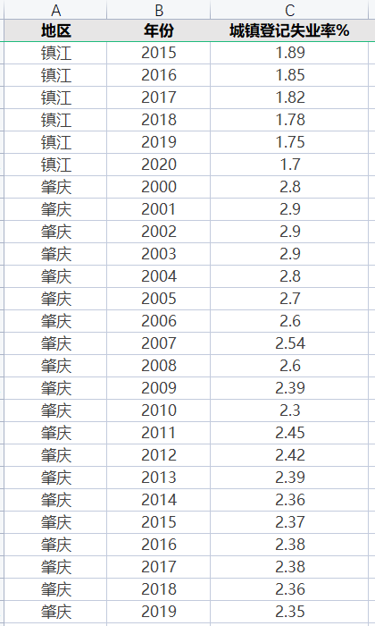 数据名称:全国335个地级市城镇登记失业率