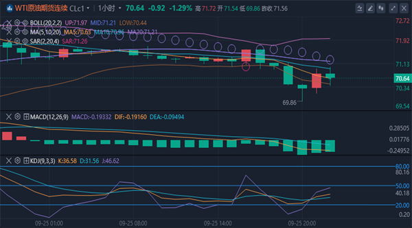 【原油消息面分析】:周三(9月25日)欧盘时段,受强劲的技术阻力和市场不确定性的压力,油价下跌。投资者的注意力将转向美国能源信息署(EIA)的原油库存,此前美国石油协会(API)的库存下降幅度大于预期。美国石油协会(API)数据显示,美国原油进口量为430万桶,远高于预期的110万桶。