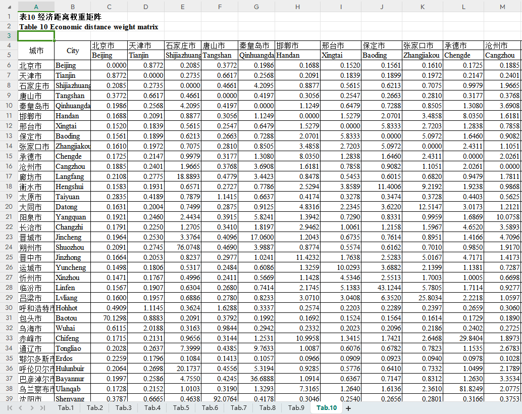 (4)空间计量检验使用的3种空间权重矩阵:空间邻接权重矩阵、反距离权重矩阵、经济距离权重矩阵。该数据集存储为.xlsx格式,1个数据文件,数据量为2.08 MB。基于该数据集的分析研究成果发表在《地理学报》2024年79卷4期。