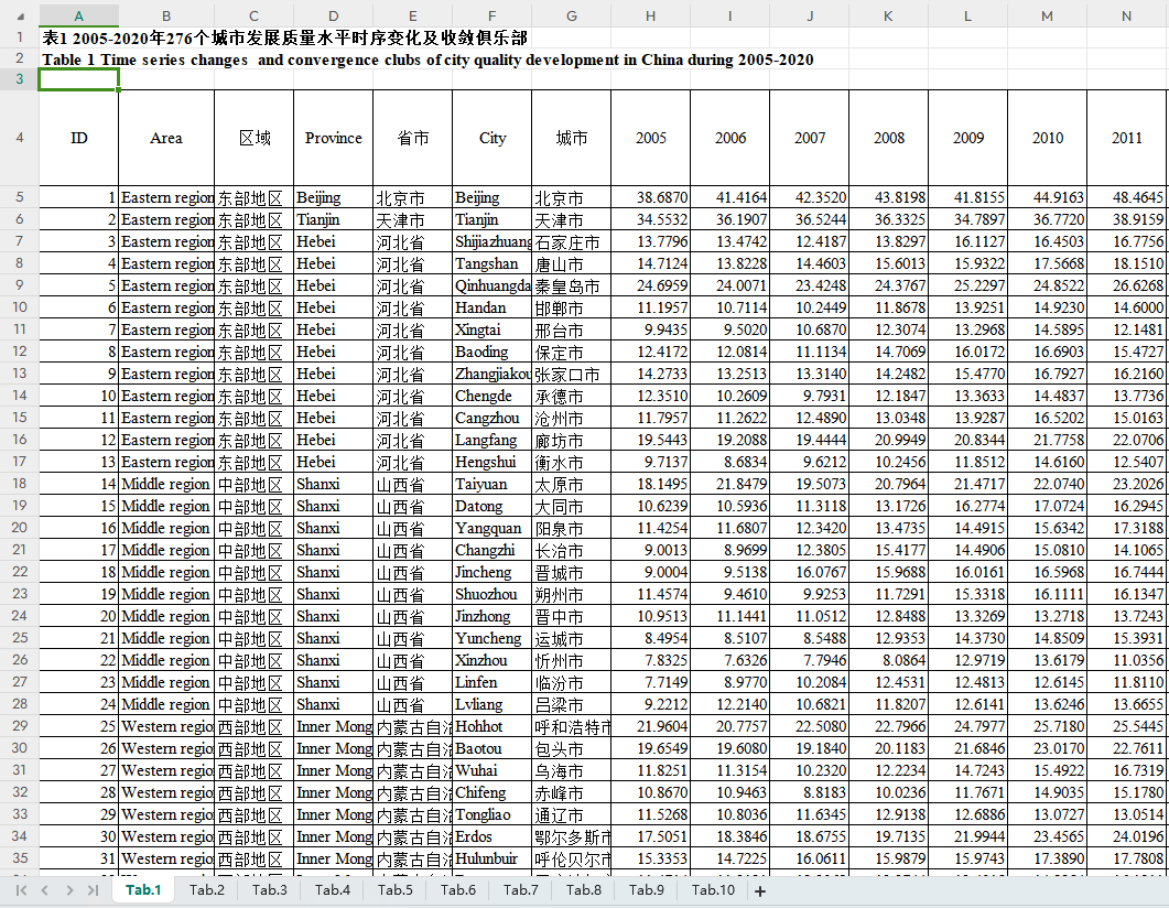 (1)2005-2020年276个城市发展质量时序变化及收敛俱乐部;