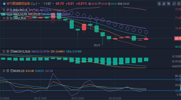 【原油消息面分析】:周三(9月25日)欧盘时段,受强劲的技术阻力和市场不确定性的压力,油价下跌。投资者的注意力将转向美国能源信息署(EIA)的原油库存,此前美国石油协会(API)的库存下降幅度大于预期。美国石油协会(API)数据显示,美国原油进口量为430万桶,远高于预期的110万桶。