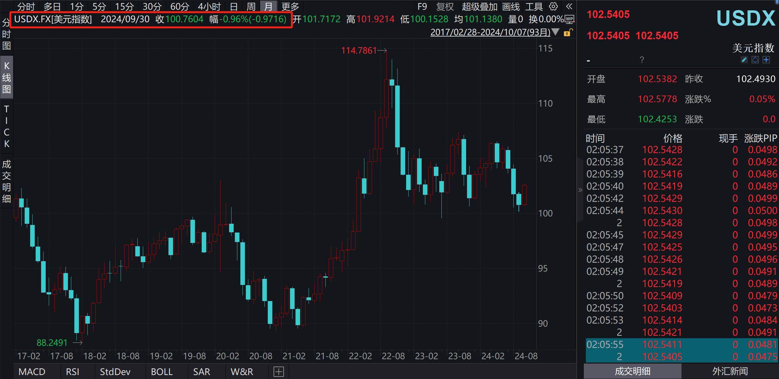 民生银行首席经济学家温彬点评,2024年9月,美联储自2020年以来首次降息,将联邦基金利率目标区间下调50bp,超出市场预期。与此同时,日央行、欧央行维持政策利率不变,美国与其他主要发达国家之间利差收窄,推动美元指数走弱、全球资产价格整体上涨。