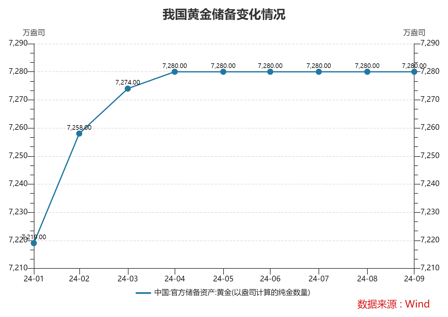 黄金储备方面,9月末,官方黄金储备为7280万盎司,已是连续第5个月维持不变。