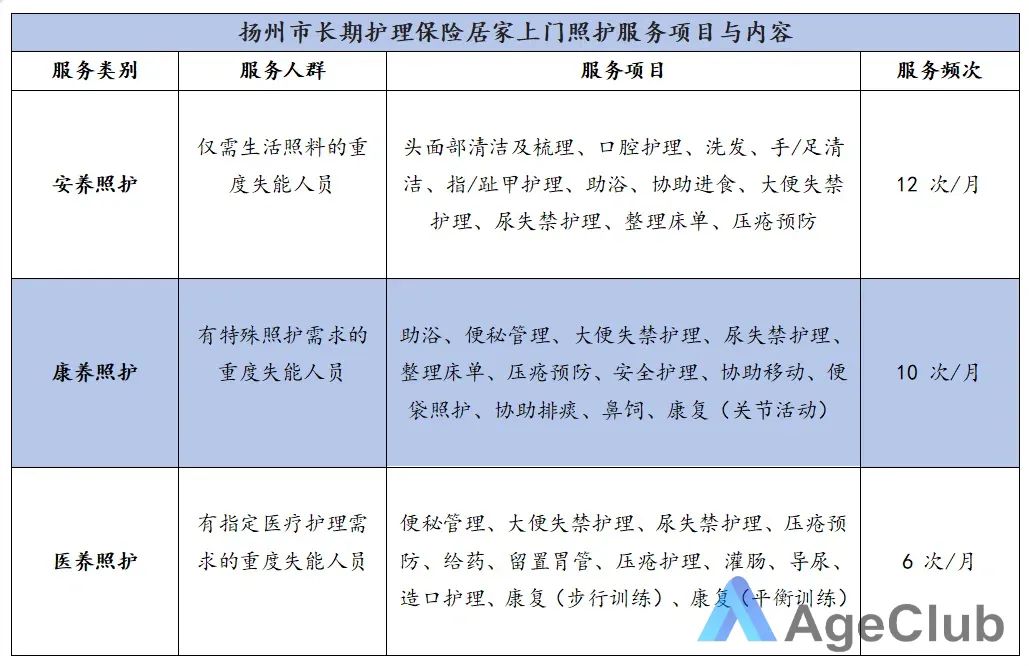 其中,扬州市居家上门照护服务项目分为安养照护、康养照护以及医养照护,打造出了多样化和特色化的服务类别,能够满足不同老年群体的居家护理需求。