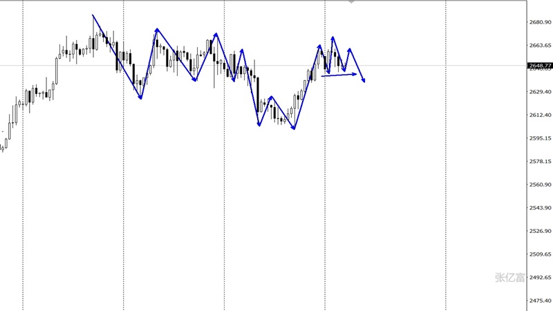 昨日黄金市场早盘低开在2655.6美元/盎司,后行情直接回落,日线最低给到了2642.9美元/盎司,日线最高触及到了2666.8美元/盎司,后行情二次回落,日线最终收线在了2648.7美元/盎司,后行情以一根上影线很长的倒锤头形态收线,而这样的形态收尾后,黄金高位徘徊中。黄金四小时级别上看,布林带继续收口迹象,金价运行在中轨附近徘徊中,预期震荡调整,在昨日冲高遇阻后,金价有望出现承压概率,2661美元将视为重要的强弱风向标,如果后市不能突破,大概率将出现承压回调,支撑关注2643一带是否下破。综合以上分析,张亿富认为:黄金高位调整中,高位有承压迹象,后市操作上考虑反弹做空为先,低多为辅,上方关注2661-2672美元阻力,下方关注2643-2630美元一线,破位下看。