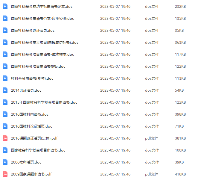 【资料】1991-2024年国家社科基金立项清单和近100份申请书范本
