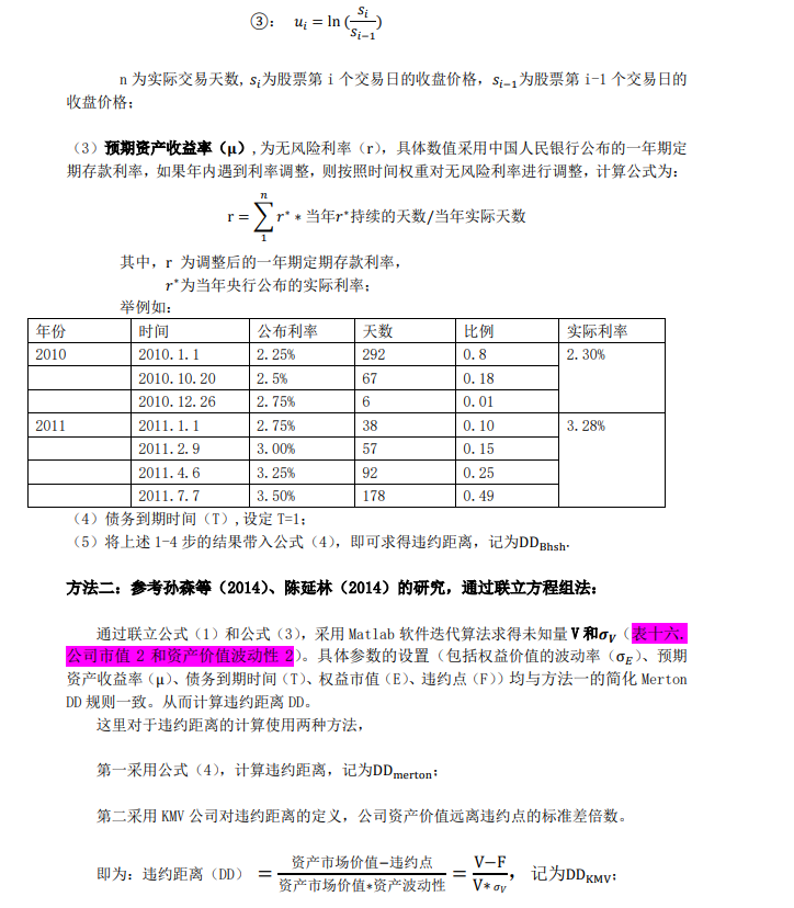 ExpectedReturnRate [预期资产收益率] - 即无风险利率,具体数值采用中国人民银行公布的一年期定期存款利率,如果年内遇到利率调增,则按照时间权重对无风险利率进行调整,具体计算方法见说明书“3.12MertonDD模型”。