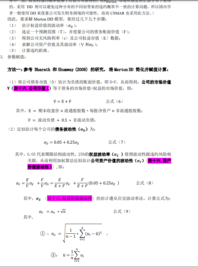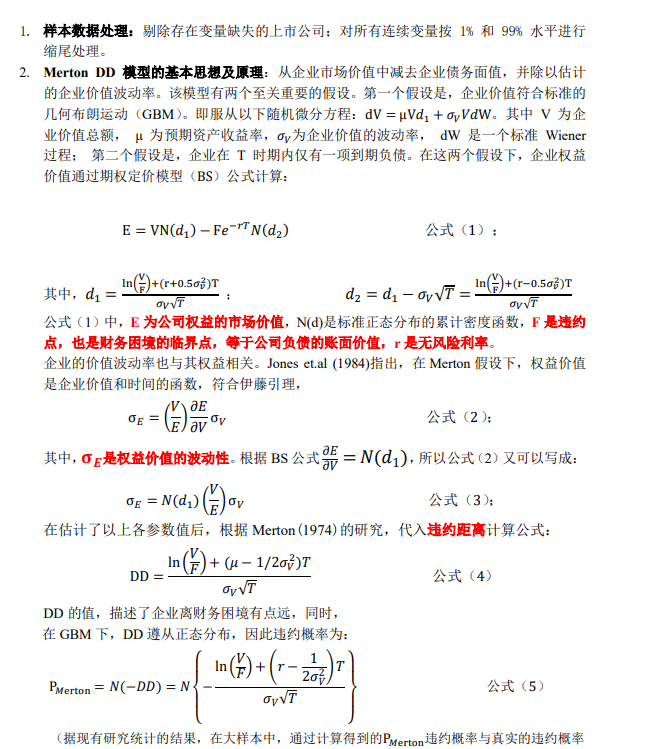 DDmerton [DD_merton] - 采用Matlab软件迭代和联立方程组方法,参考Merton违约距离计算公式计算出的违约距离,具体算法见说明书“3.12MertonDD模型”。
