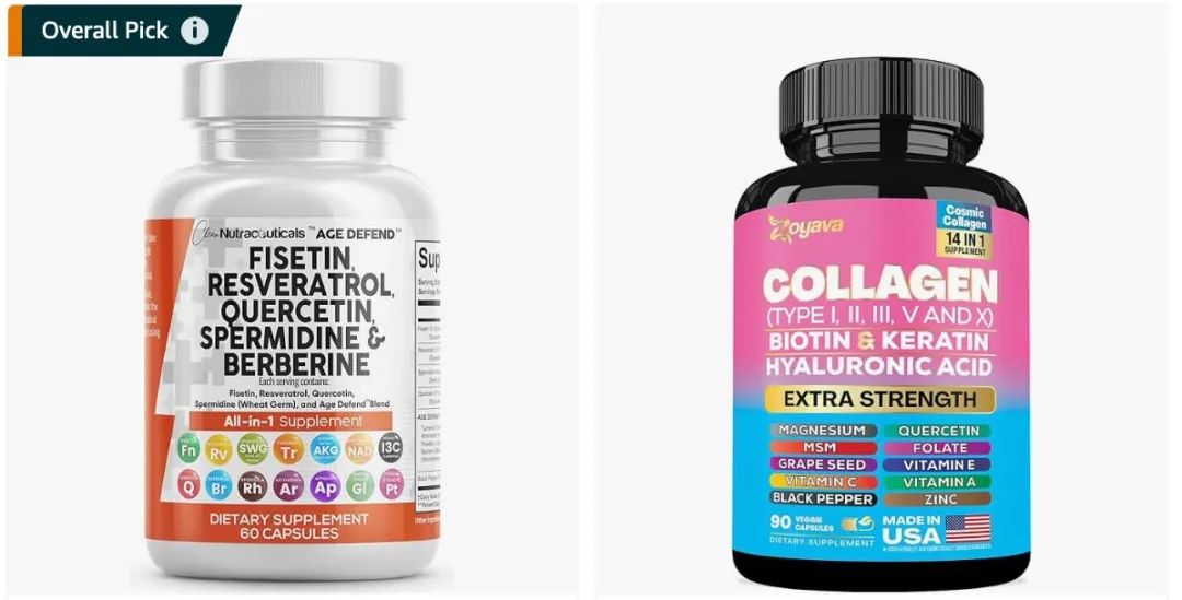 海外这两类产品包含对各种成分的灵活运用和组合,除了较为常见的B族维生素、辅酶Q10等,还有如NAD+、金雀异黄素、非瑟酮等较为前沿的原料。