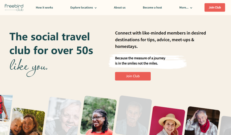 作为一个全球性、点对点的老年会员俱乐部,Freebird为老年人提供了一种全新的旅行方式以及充分利用房屋资产价值的方法,让他们在旅居中不断结识新朋友,感受社交乐趣和文化互动。