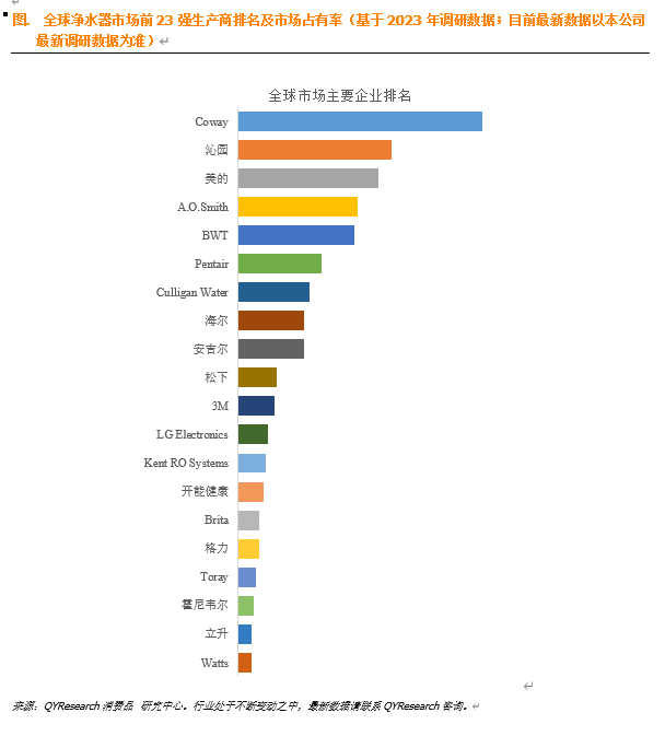 竞争格局:随着市场的不断扩大和竞争的加剧,净水器行业将出现更多的品牌和产品。同时,头部品牌将通过技术创新、渠道拓展等方式巩固市场地位。