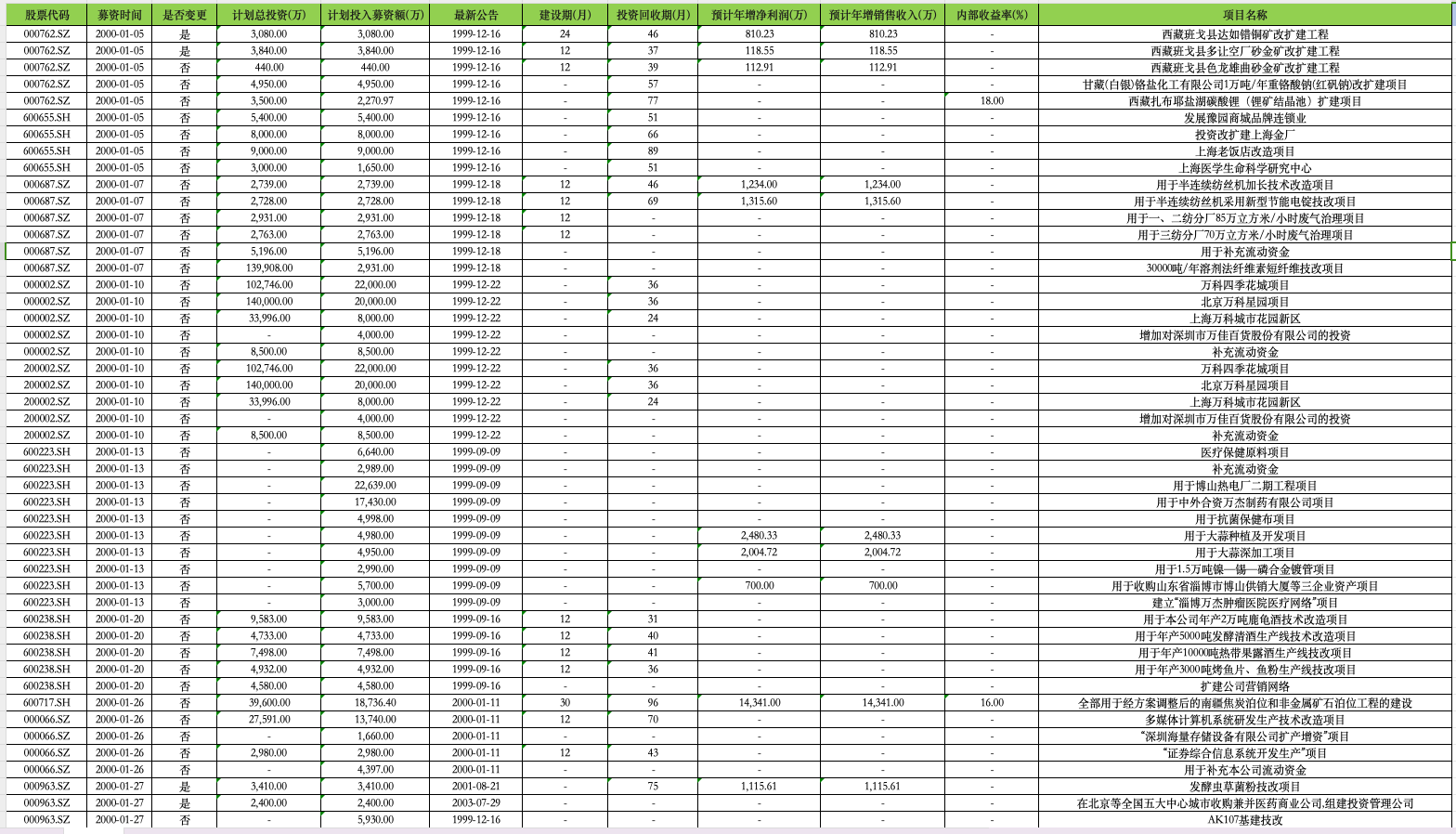 [经管数据集] 【数据】上市公司项目计划投资与募资统计数据2000-2022 |