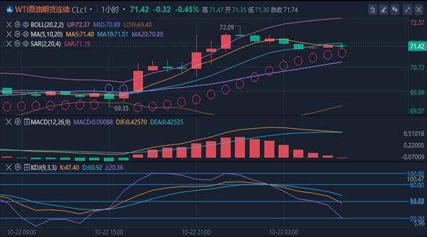 【原油消息面分析】:周二WTI原油一度站上72美元,但随后回吐部分涨幅,最终收涨2.17%,报71.21美元/桶;布伦特原油收涨2.05%,报75.21美元/桶。