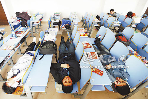 有的学生为了备条后路也去找工作,但发现待遇在3000元以上并有发展前景的工作并不好找。“江铃汽车来招聘,我们班很多人都去投简历,最后只有一个被录用了。”该校材料专业一位大四学生透露。