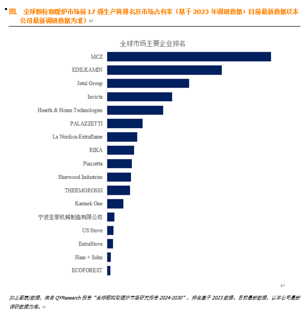 根据**头部企业研究中心调研,全球范围内颗粒取暖炉生产商主要包括MCZ、EDILKAMIN、Jøtul Group、Invicta、Hearth & Home Technologies、PALAZZETTI、La Nordica-Extraflame、RIKA、Piazzetta、Sherwood Industries等。2023年,全球前十强厂商占有大约68.0%的市场份额。