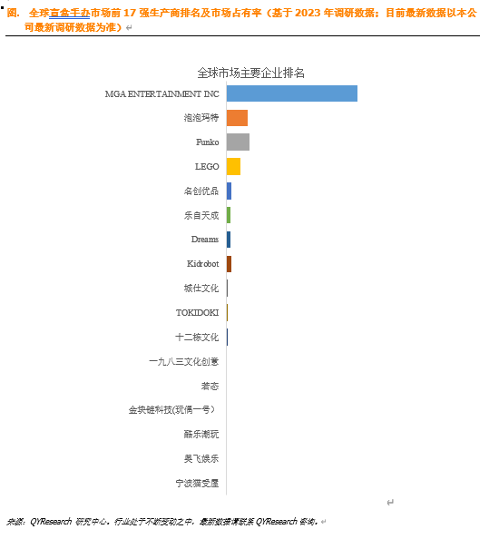 全球范围内,盲盒手办主要生产商包括MGA、Funko、名创优品、LEGO、泡泡玛特、等,其中前五大厂商占有大约70的市场份额。
