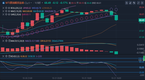 【原油消息面分析】:周三,10月31日,亚盘时段,美原油延续涨势,主要是美国原油库存意外下降,汽油库存下降至两年低点,且大幅低于前值,同时有报道称OPEC+可能推迟石油增产计划,一定程度上支撑油价走强,对于汽油库存的意外下行,暗示了潜在需求的增长预期,不排除油价继续走高的可能性。