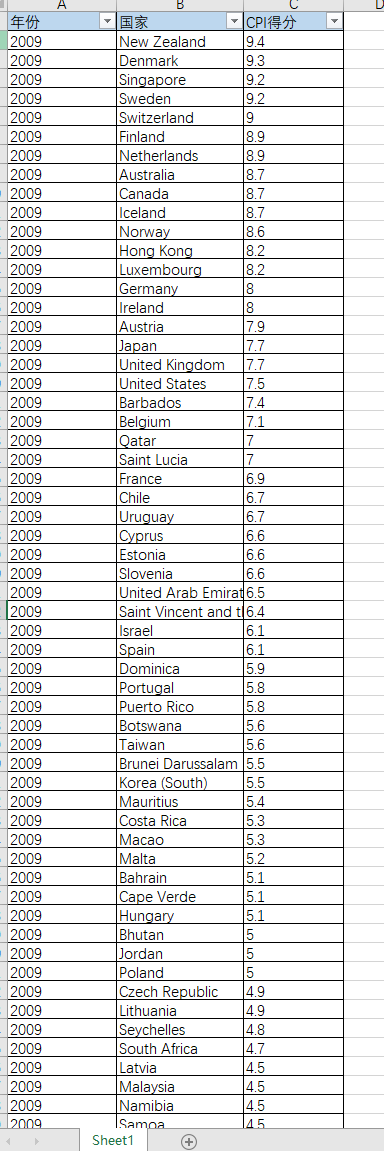 [经管数据集] 【数据】 2009-2022年世界各国清廉指数CPI整理excel数据 |