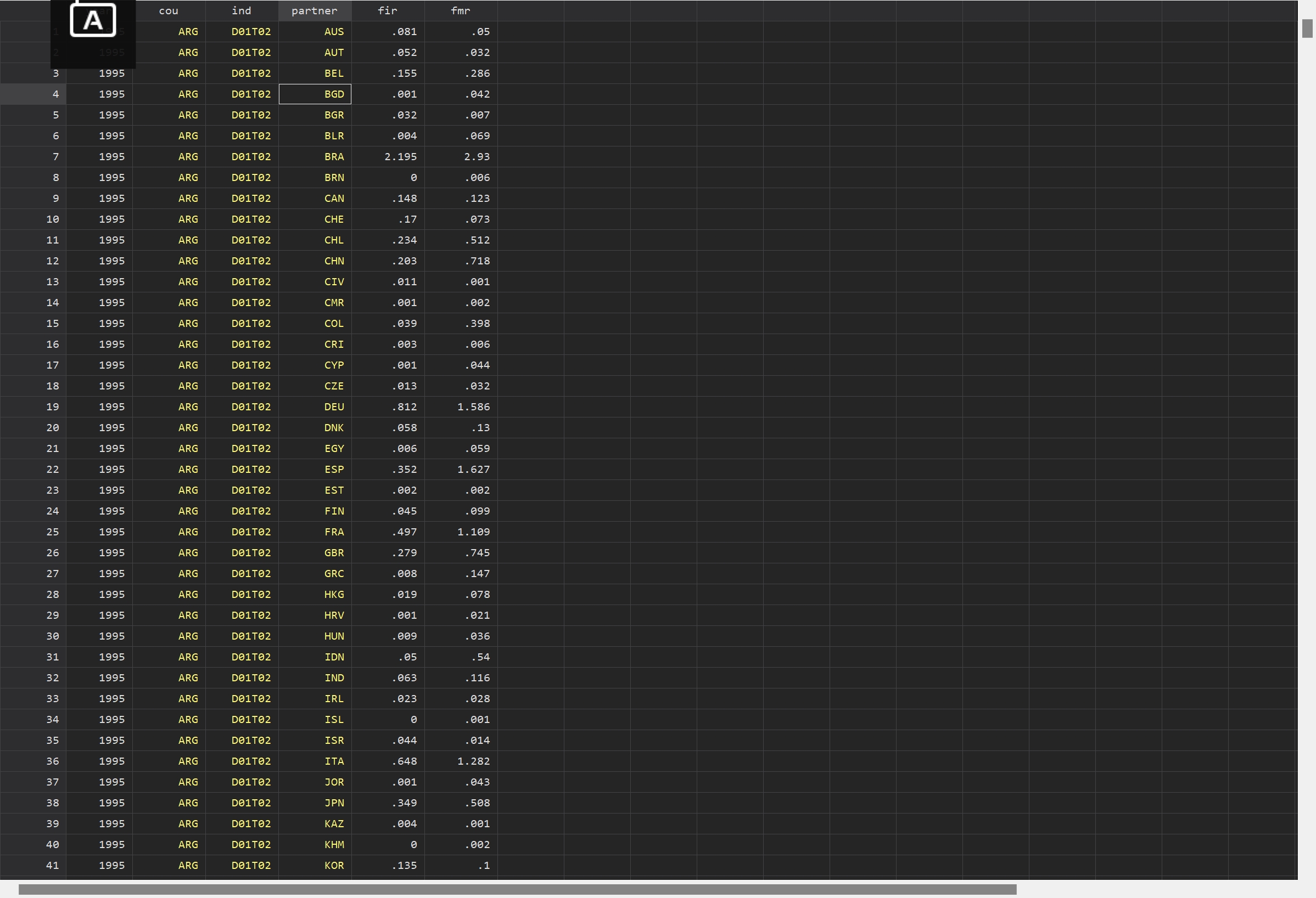 FIR 指标衡量一个国家(cou)和行业(ind)对其供应商(合作伙伴)的进口依赖程度