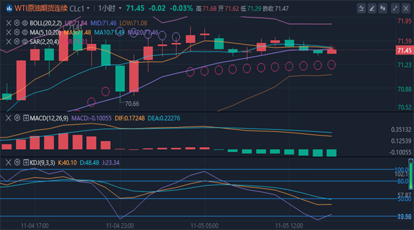 【原油消息面分析】:周二(11月5日)美原油亚盘时段小幅震荡,但依然延续隔夜涨势,交投于71.51美元/桶附近。而基本面上美国大选即将落地,市场反而对于原油需求端的预期转为乐观,加上OPEC+增产放缓,形成供需双重提振的概率进一步增加。