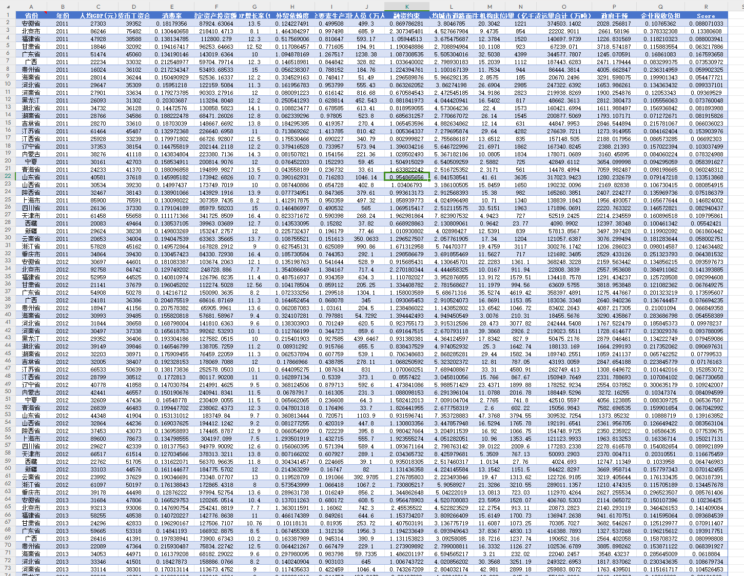 数据来自《中国统计年鉴》及各省统计年鉴