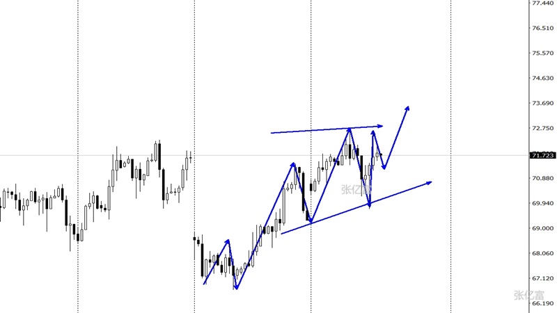 原油市场昨日开盘在72.22美元/桶,后行情先回落,日线最低给到了69.92美元/桶,后行情尾盘强势拉升,日线最高触及到了72.83美元/桶,后行情回落,日线最终收线在了72.02美元/桶,后行情以一根下影线极长的启明星形态收线,而这样的形态收尾后,原油有企稳迹象。四小时级别上看,布林带开口向上,油价运行在中轨上方发散中,油价在72.6-69.7区域来回震荡,面临方向选择,如果油价再次出现企稳后,大概率向上突破概率。综合以上分析,张亿富认为:原油在回落回补缺口之后出现了多头延续,形成反转,有望带动多头突破,今日操作上考虑回撤布局多单为先,高空为后,上方关注72.6-73.5美元阻力,下方关注71.4-69.7美元支撑,破位则会继续下看。