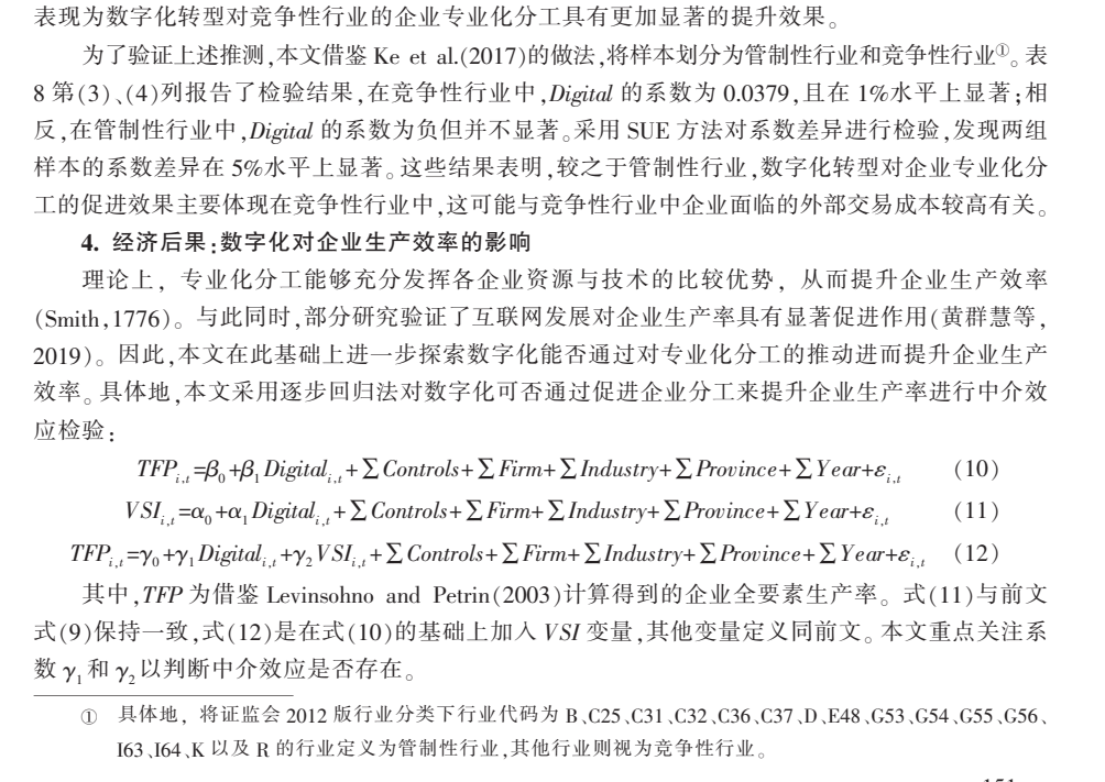 袁淳,肖土盛,耿春晓等.数字化转型与企业分工:专业化还是纵向一体化[J].中国工业经济,2021,No.402(09):137-155.