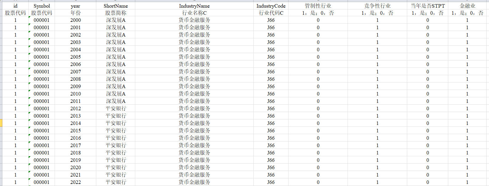 2022-2001年上市公司企业竞争性行业和管制性行业数据.zip