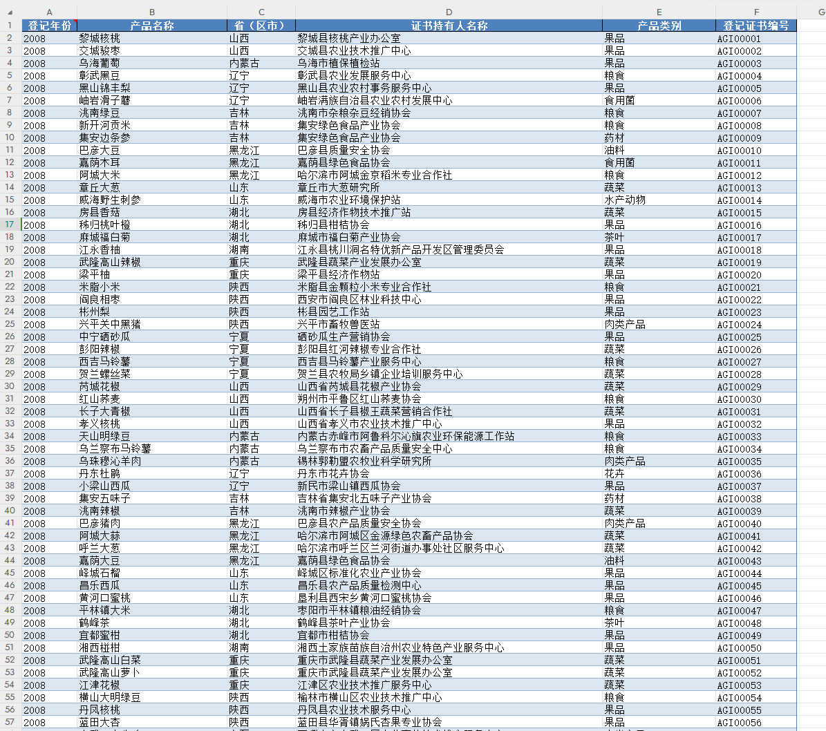 地理标志农产品数据集(2008-2022).zip