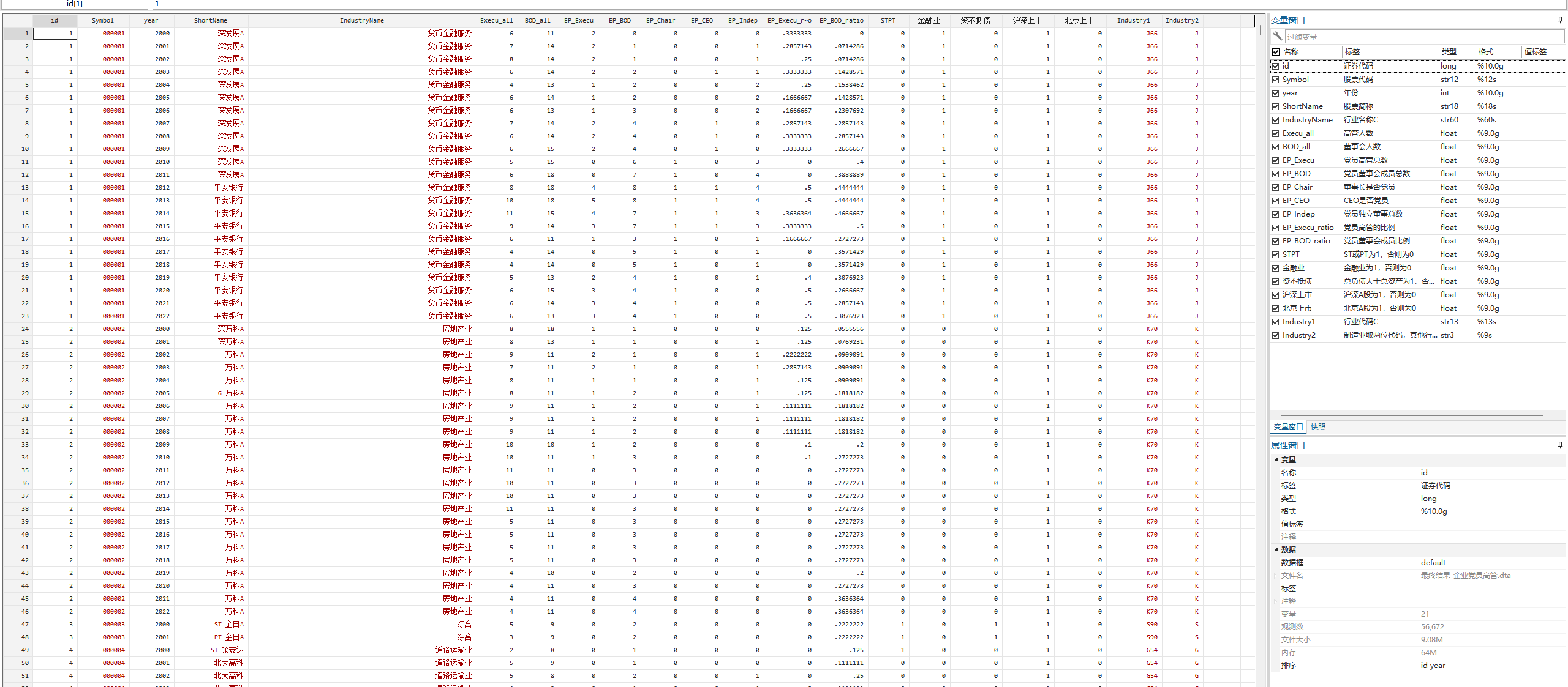 - EP_BOD_ratio:党员董事会成员的比例
